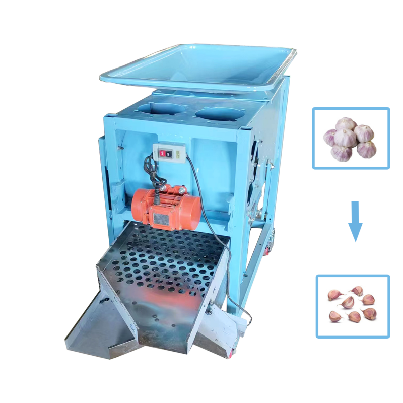 2. Precise sorting and grading: Automatically sorts garlic cloves by size using sieves or rollers to meet different market or planting needs.